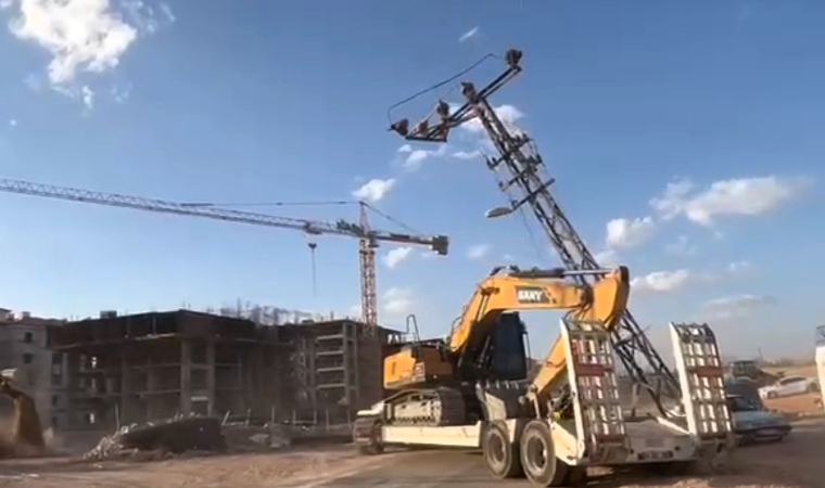 TOKİ şantiyesinden çıkan iş makinesi yüklü tır, tali yolda dönüş yaptığı sırada dengesini kaybederek elektrik direğine çarptı. Kazada can kaybı veya yaralanma yaşanmazken, tırda ve elektrik direğinde maddi hasar oluştu.